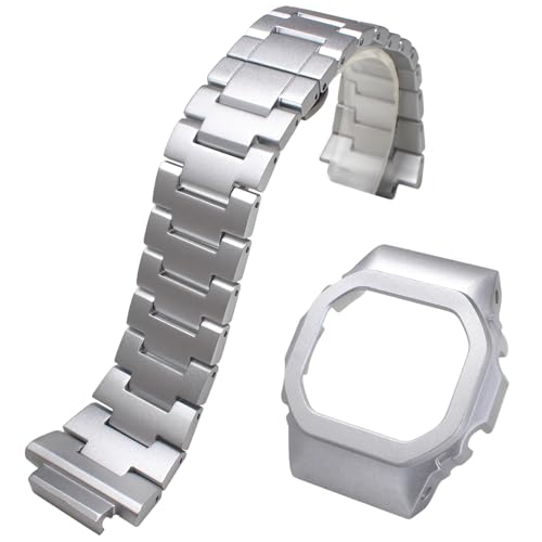 Metallklockarmband med klockfodral för Casio för G-shock DW-5600 GW-B5600 GB-5600 GWX-5600 DW-5000 DW-5025 DW-5030 DW-5035 GW-5000 GW-5035 herrarmband rem band med klockram lätt aluminium