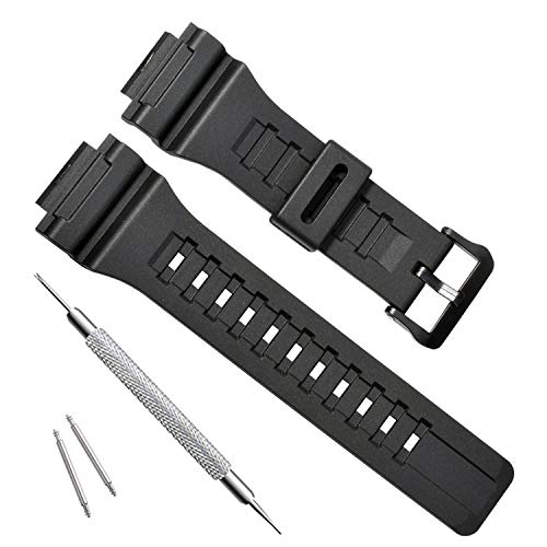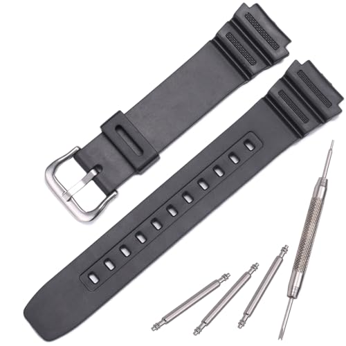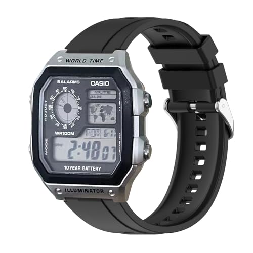 xhKJO Ersättningsarmband för Casio AE 1200/W 218h/AE 1300/F 91W/W 218h/AQ S810W, klockarmband i silikon armband för Casio W 219/F 108Wh/AE 1000W/SGW 500H, svart, 120 millimeters, rem