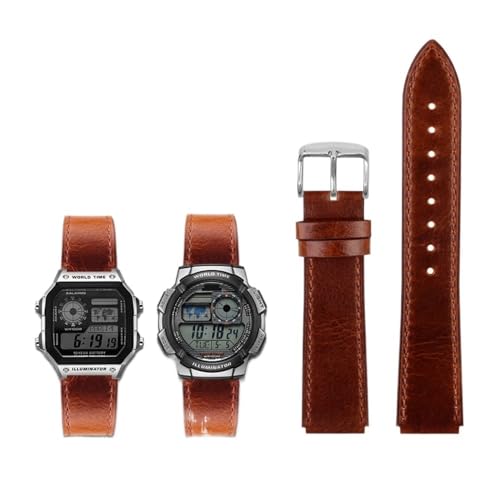 Passar for Casio G-Shock AE-1200WH/1300/1000/A159/A158 AQ-S810W MRW-200H Band Armband i äkta läder Retro klockarmband for män 18 mm(Brown silver pin)