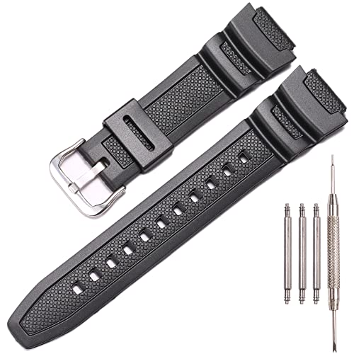 OliBoPo Vattentätt klockarmband i naturlig harts för Casio SGW-300H MRW-200H AE-1200 W-800H W-735H AQ- S800W AQ-S810W (svart)