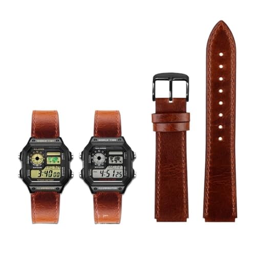 Passar for Casio G-Shock AE-1200WH/1300/1000/A159/A158 AQ-S810W MRW-200H Band Armband i äkta läder Retro klockarmband for män 18 mm(Brown black pin)