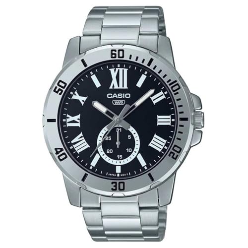 Casio herrklocka analog svart urtavla rostfritt stål band MTP-VD200B-1BUDF, SILVER, Armband