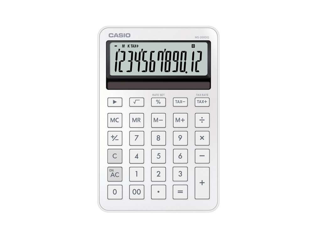 Casio Ms-200Dq, Skrivbord, Grundläggande, 12 Siffror, Batteri/Solcell, Vit