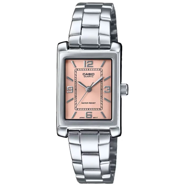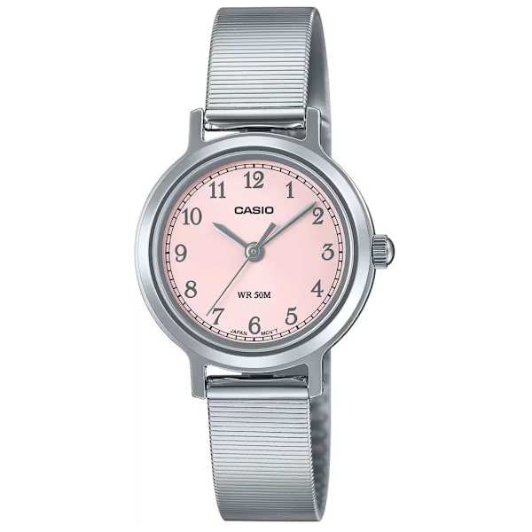 Damsklocka CASIO LTP-1234DD-4A med rosa urtavla och silverarmband i presentförpackning