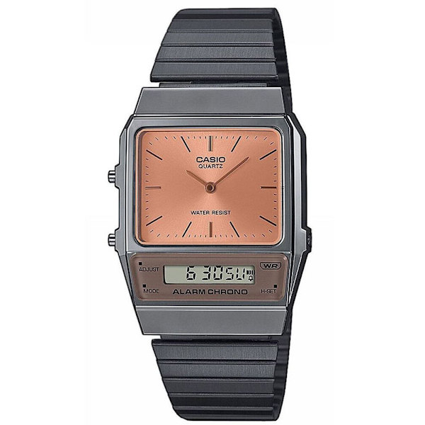 CASIO Vintage Dual Time AQ-800ECGG-4ADF Unisex Klocka i Grått med Rosa Guldskiva och Presentförpackning