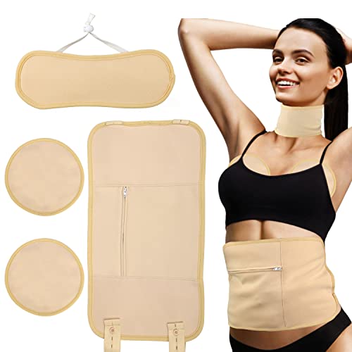Ricinoljepaket, Återanvändbar Ricin Oil Pack Wrap med Elastisk Rem för Nacke Mage och Bröst Avtagbar TPU Castor Oil Pack Förhindrar Läckage (Khaki)