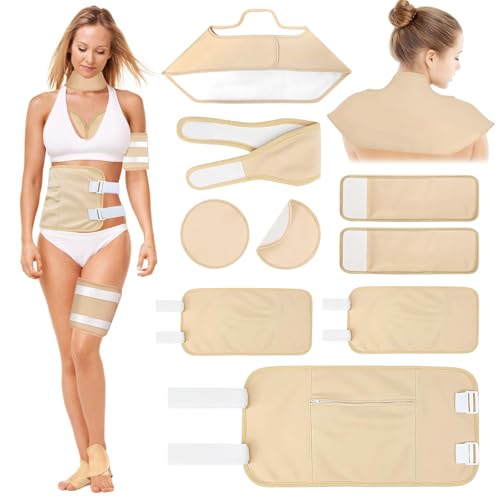 Ricino Oil Pack, 9 i 1 Förpackningar Återanvändbara Ricinolja Castor Oil Pack Kit med Justerbara Elastiska Remmar för Hals, Axel, Bröst, Storlek, Knä, Fötter