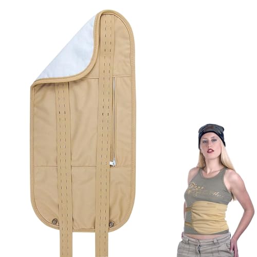 Ricinoljepaket, Återanvändbar Ricin Oil Pack Wrap med Magiskt Lim för Nacke Mage och Bröst Avtagbar TPU Castor Oil Pack Förhindrar Läckage (Khaki)
