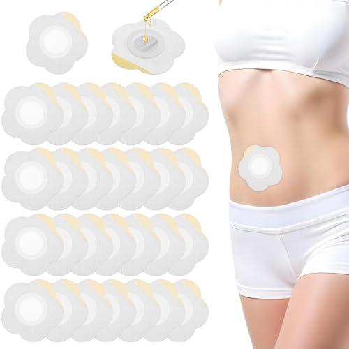 Ptwola 30 stycken Castor Oil Patches Pack ricinolja förpackning omslag för naveln självhäftande kuddar spunlace absorberande ricinolja kompress ingen tvätt (olja ingår ej)