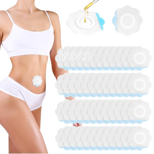 Fefod 50 stycken ricinolja förpackning wrap för naveln, Castor Oil Pack självhäftande ricinolja kuddar Spunlace, duk mycket absorberande ricinoljeförpackning, ingen tvätt (innehåller ingen olja)
