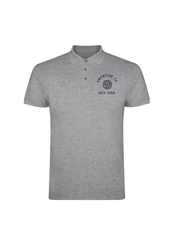 AMERICAN COLLEGE USA Pikétröjor sport andas tryckta blandade kläder herr och dam casual modell ACPLW7 MELL grå XXL, Färg: grå, XXL