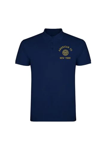 AMERICAN COLLEGE USA Pikétröjor sport andas tryckta blandade kläder herr och dam casual modell ACPLW7 Navy XL, Färg: blå, XL
