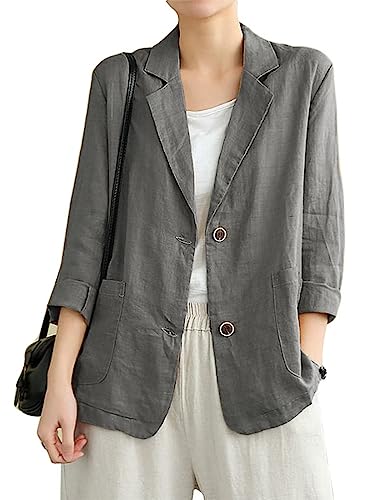 Cotton Linen Blazer for Womens Long Sleeve Loose Casual Blazer Jackets(Dark Grey, L)