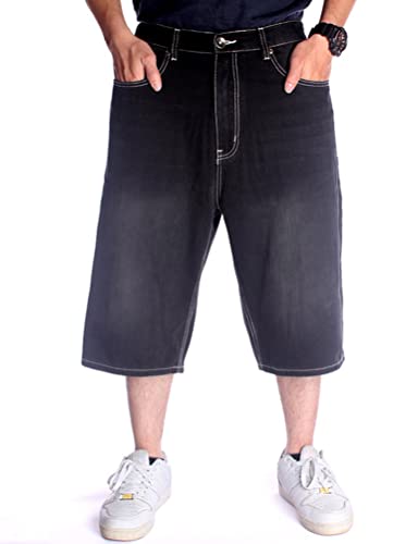 IDEALSANXUN Baggy Jean Shorts for Men Jorts Casual Loose Fit Long Denim Shorts, Black 024, 32