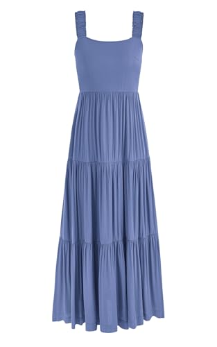 PRETTYGARDEN Women's 2025 Casual Loose Plain Maxi Sundress Flowy Tank Dress Sleeveless Summer Beach Tiered Long Dresses (Grey Blue,Large)