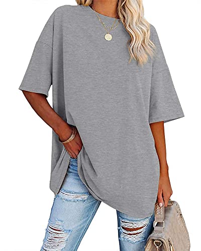 Ebifin Women's Oversized T-Shirt Round Neck Short Sleeve Tops Casual Loose Basic Summer T Shirts Blouse., 02-light grey, XL
