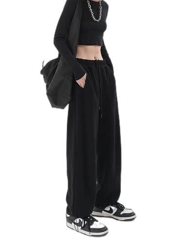 Womens Wide Leg Sweatpants Casual Loose Yoga Pants Comfy Lounge Joggers Baggy Sweatpants Pockets Black