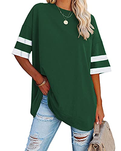 Ebifin Women's Oversized T-Shirt Round Neck Short Sleeve Tops Casual Loose Basic Summer T Shirts Blouse., green