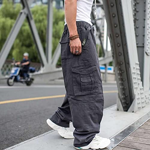 HUNGSON Mens Cargo Pants Drawstring Casual Hiking Pants Joggers Athletic Trousers Cotton Loose Straight Sweatpants for Men Grey