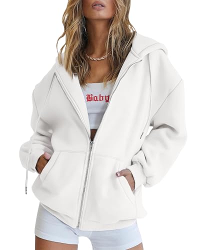 EFAN Women Zip Up Hoodies Oversized Sweatshirt Jacket 2025 Fall Fleece Cute Pullover Hooded Tops Teen Girls Casual Loose Fit Y2k Trendy Fashion Gym Clothes Outfits White S