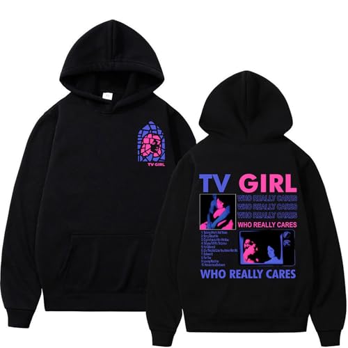 TV Girl Solid Print Hoodie Unisex Casual Långärmad Sweatshirt, Svart, M