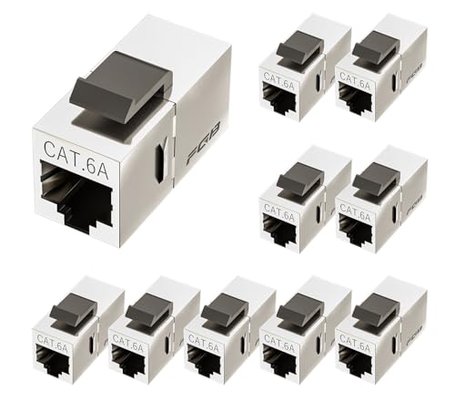 FGB RJ45 koppling Cat6a Keystone kopplare modul skärmad Keystone Jack uttag till uttag ethernet nätverkskoppling nätverkskontakt för förlängning Ethernet-kabel (10 stycken, silver)