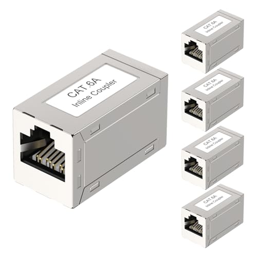 MEIRIYFA RJ45 Cat6 skärmad inline-koppling, Ethernet Cat 6-uttag till hona, Keystone Jack 1000 Mbps 8P8C rak modulär kontakt för Cat6A/6/5e/5 nätverkskabel – 4 stycken, silver