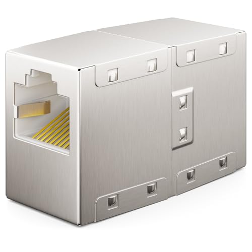 deleyCON 4 Stycken RJ45 Koppling CAT 7 (10Gbps, 600MHz) Kontaktdon CAT7 Förlängningskabel Ethernet-Adapter Metall Kompatibel med Cat8, Cat7, Cat6, Cat5 Patchkabel LAN DSL POE 2x RJ45-Uttag, Silver