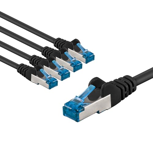 goobay 66043 CAT 6A nätverkskabel i en uppsättning med 5/patchkabel skärmad S/FTP/CU Ethernet-kabel, PiMF, LSZH/Cat 6a kabel med 10 Gbits/svart/5 x 5 m