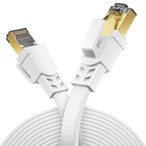 Akake Cat 8 Ethernet-kabel, 12 m kraftig höghastighet, platt internetnätverkskabel, professionell LAN-kabel, 26 AWG, 2000 Mhz 40 Gbps med guldpläterad RJ45-kontakt, skärmad på vägg, inomhus och
