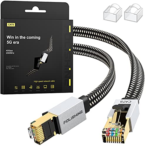 Cat 8 Ethernet-kabel 5 m, höghastighet, Gigabit, nylonflätad, LAN-nätverk, Cat8 patchkabel, 40 Gbps 2 000 MHz, RJ45 avskärmad platt kabel, inomhus och utomhus för modem/router/switch, snabbare än Cat5e/Cat6/Cat7