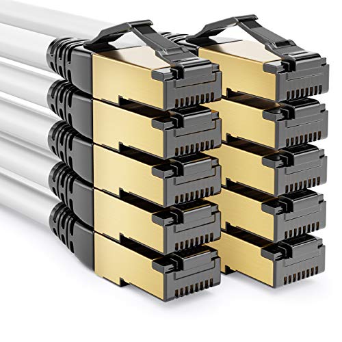 deleyCON 10x 0,5m CAT8.1 Patchkabel Nätverkskabel Datakabel S/FTP PIMF 2000MHz 40Gbit RJ45 LAN DSL-Kabel CAT.8 Ethernet-Kabel RJ45-Kontakt - Vit
