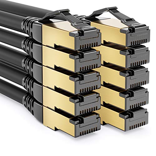 deleyCON 10x 1m CAT8.1 Patchkabel Nätverkskabel Datakabel S/FTP PIMF 2000MHz 40Gbit RJ45 LAN DSL-Kabel CAT.8 Ethernet-Kabel RJ45-Kontakt - Svart