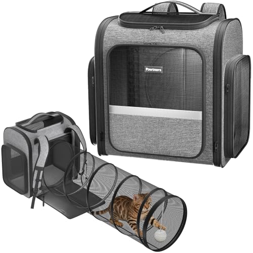 Pawtners Cat Carrier Backpacks Expandable Cat Backpack with Breathable Mesh, Pet Carrier Backpack for Cats Small Dogs Puppies Up to 18 Lbs, Dog Carrier Backpack for Travel Hiking Camping Outdoor