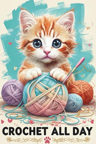 Cute cat with colorful yarn balls, CROCHET ALL DAY, Lined Journal Notebook - 6x9 Softcover, 121 lined Pages, Matte finish: Perfect for Crochet Lovers, Crafters, and Creative Gifting