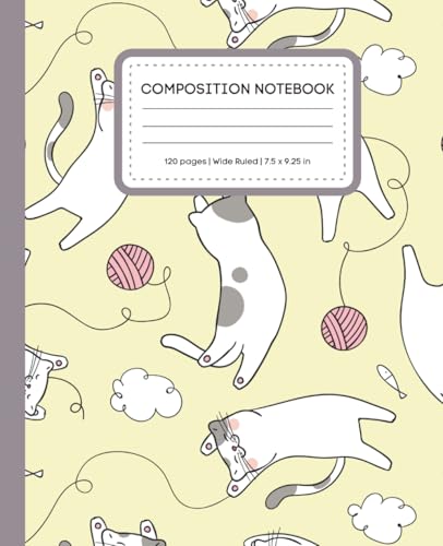 Playful Cats Wide Ruled Composition Notebook – 120 Pages (7.5 x 9.25 in): Cute Cat Pattern with Yarn Balls & Fish – Fun Notebook for School, Journaling & Everyday Writing