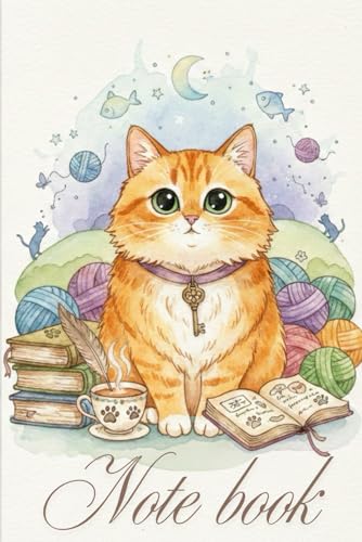 My Cute Cat Notebook: Watercolor Orange Cat Playing with Yarn Balls - Wide Ruled Journal for School, Work, and Journaling (6x9 inches, 120 Pages)