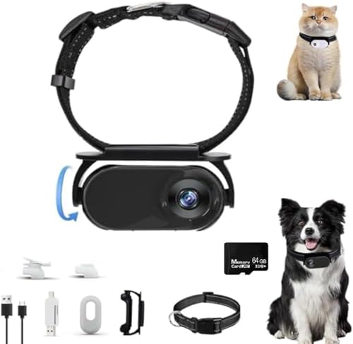 Cat Cam Pro 2.0 – Vattentät 1080p Pet Action & Cat Collar Camera, 2025 nytt husdjurskamerahalsband for katter och hundar, trådlös minisportkamera for inomhus- och utomhusäventyr(Black,64g)