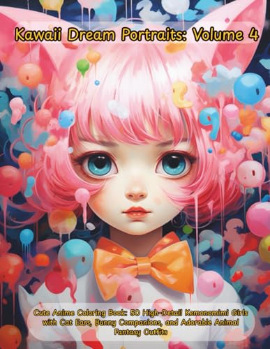 Kawaii Dream Portraits: Volume 4: Cute Anime Coloring Book: 50 High-Detail Kemonomimi Girls with Cat Ears, Bunny Companions, and Adorable Animal Fantasy Outfits