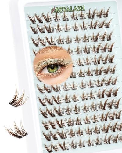 Obeyalash Brown Eyelash Clusters Wispy Individual Lashes 120pcs Cluster Lashes Natural Look C Curl Cat Eye Lashes 6-12mm Soft and Lightweight by DIY at Home(Zk28)