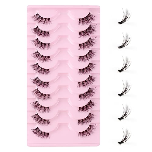 Glowing Win Naturliga Falska Ögonfransar 10 Par Falska Lashes Natural Cat Eye Lashes 3D Half Lashes tunn Kattöga Band Handgjord Falska Eyelashes Återanvändbara Mink Lashes