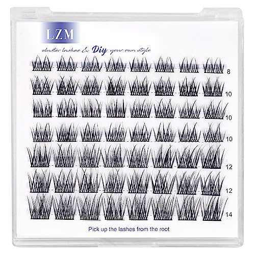 LZM Individual Lashes Natural LookFalse Eyelashes 8-14mm D Curl Diy At Home Thin Band Cat Eye Lashes (Wishes-D curl)