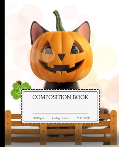 Composition Notebook – College Ruled for Students back to school: everyday school notebook with a pumpkin head cat