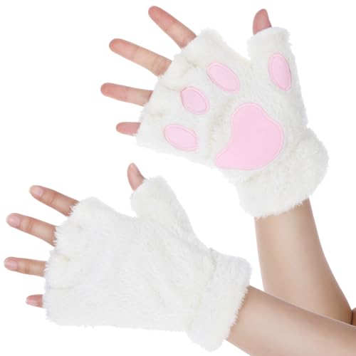 Sibba Cat Paws handskar fingerlösa 2 st björn furry Paw Handhandskar Cute Paw Gear Cosplay kostym tillbehör kvinnor handske nyhet kläder tillbehör för halloween partys föreställningar flickor, Vit, En
