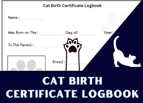 Cat Birth Certificate Logbook: Newborn Kitten Birth Certificate for Cat Breeders | Breeder Litter Records Book | Recording Cat Birth Great Gift for For Kitten Breeders and Cat Owners + 100 certificate