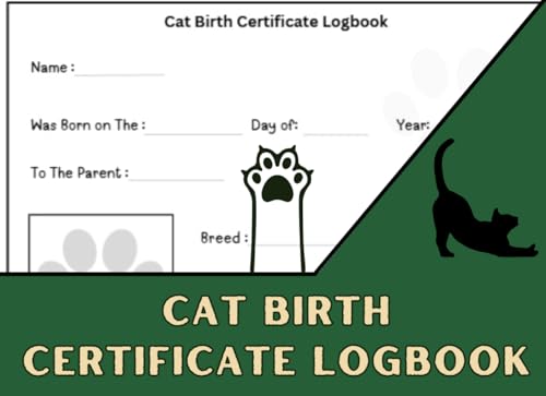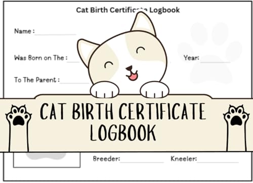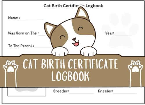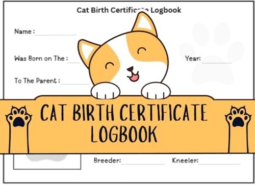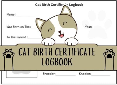 Cat Birth Certificate Logbook: Newborn Kitten Birth Certificate for Cat Breeders | Breeder Litter Records Book | Track Cat Births, Great for Breeders & Owners + 100 Certificates
