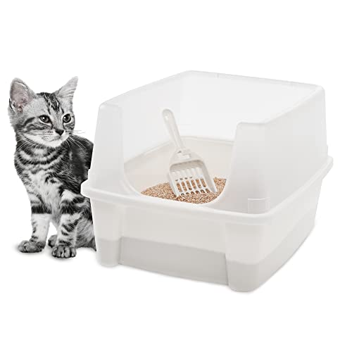 Iris Ohyama, Kattlådor med höga sidor, inget spill av strö, avtagbar hög kant, ingångshöjd: 15 cm, skopa ingår, för katt - Cat Litter Box CLH-12 - Vit