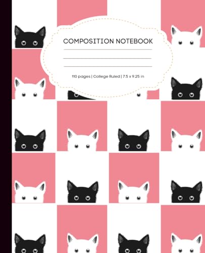 Black & White Cat Checkerboard Composition Notebook: Cute Pink & Monochrome Cat Pattern – College Ruled – 110 Pages (7.5 x 9.25 in)