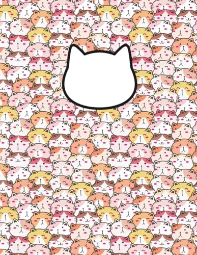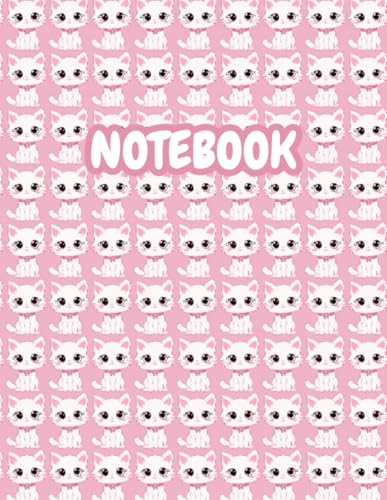 Cat Composition Notebook: Cute Kawaii Cat Line Pattern Journal for Girls, Teens & Students – 8.5 x 11 inches, College Ruled, 110 Pages
