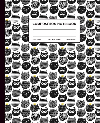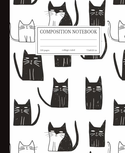Black Cat Composition Notebook: Minimalist Wide Ruled Writing Journal with Cute Black Cat Pattern, 7.5 x 9.25 inches, 110 Pages